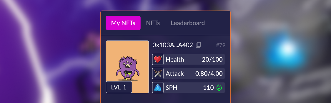 After each Battle, the health level of the character drops by 11% of the maximum HP. To restore 1% health, users must burn 1 Sapphire ($SPH).