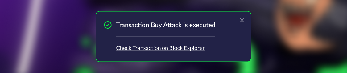 When a character is leveled up, their attack power increases. The amount of attack increase is determined randomly between a certain range. But, after the timer expires, you need to confirm the upgrade in the blockchain (read below "Checking the upgrade").