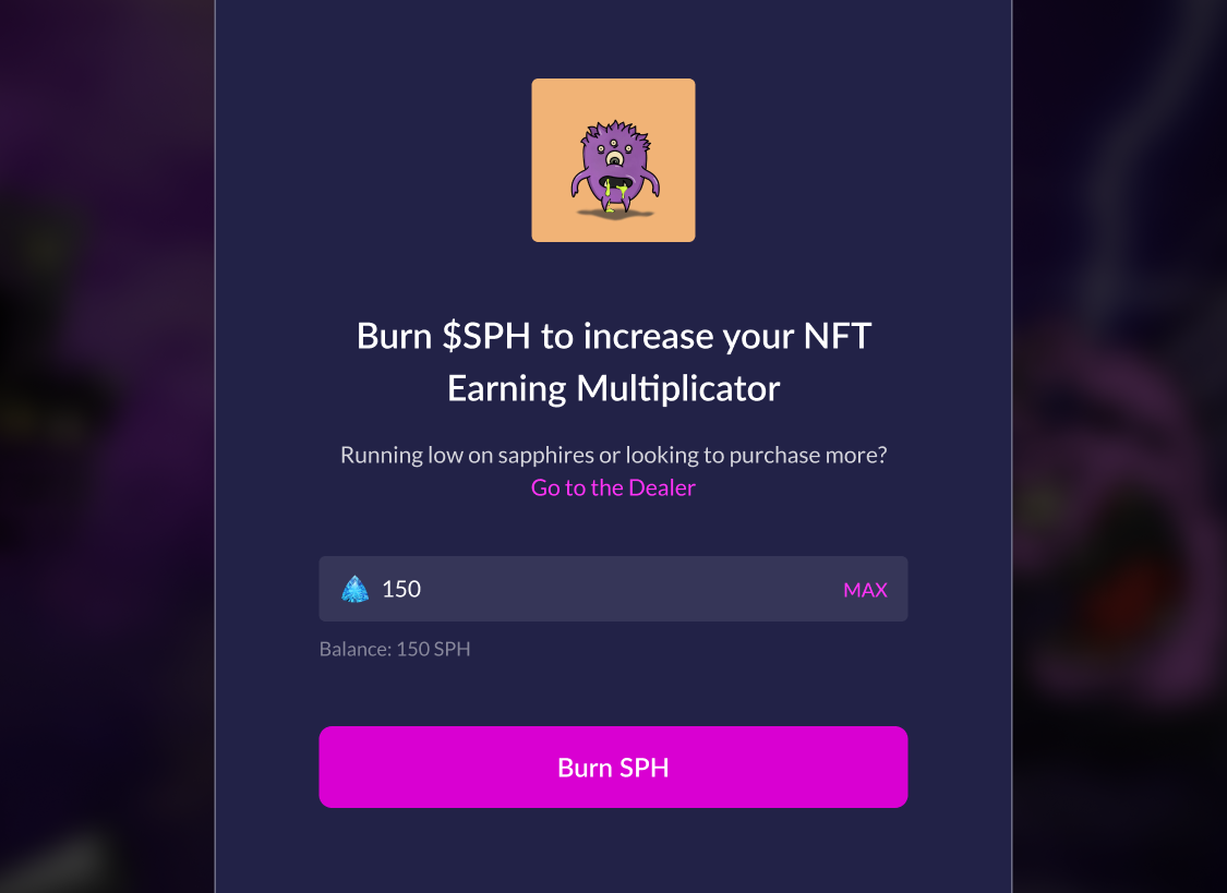 To increase their share of the treasury, NFT owners can burn SPH. This increases their coefficient when calculating the reward at the end of the Siege.