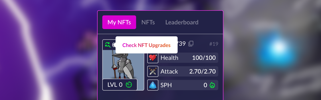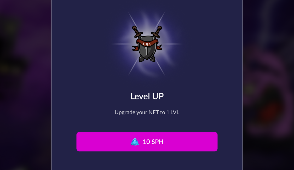 $SPH is required to level up a character. Each level increase lasts a certain number of blocks, which increases alongside the required amount of $SPH. This process can be accelerated using $FOMO (Boost Level Up).